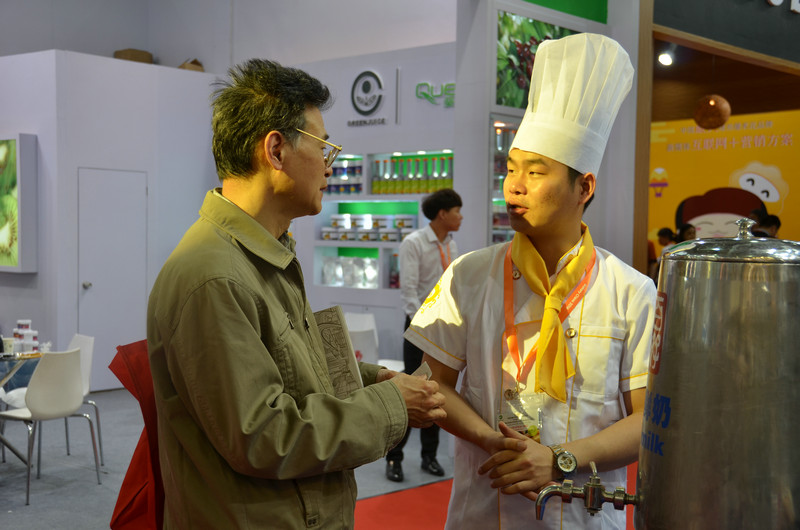 △上海烘焙展——陳楊威在向客戶介紹產(chǎn)品△