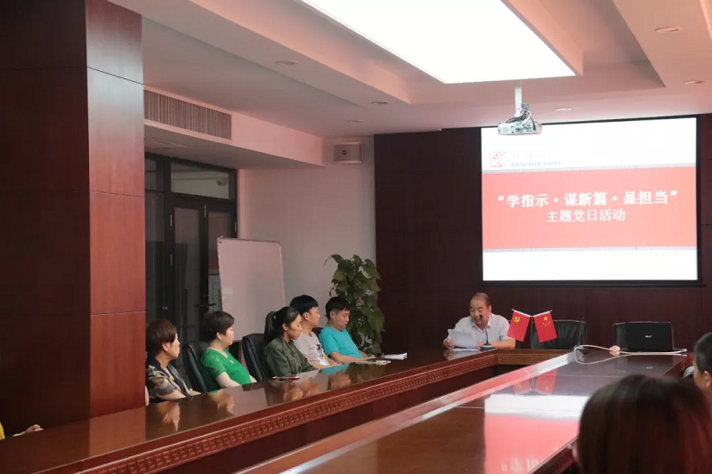7月19日,浙江百強乳業有限公司黨支部組織開展了“學指示·謀新篇·顯擔當”主題黨日活動,傳達學習習近平總書記對浙江工作作出的重要指示精神。會議由公司黨支部委員蘇曙光主持,公司全體黨員及部分員工參加了此次活動。