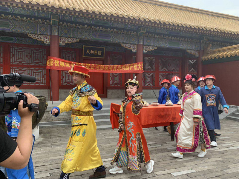 當(dāng)天下午,進(jìn)入明清宮苑,分組拍攝《太后吉祥》、《智斗和坤》微電影。大家在導(dǎo)演的安排下確定角色,換上古裝,當(dāng)了一回“皇太后”、“皇帝”、“皇后”、“大臣”、“妃子”和“宮女”,在陣陣笑聲中圓了演員夢(mèng),微電影順利殺青。在集中拍照時(shí),導(dǎo)演問(wèn):“你們公司有口號(hào)嗎?”“有!”大家齊聲高呼:“百?gòu)?qiáng),百?gòu)?qiáng),我最強(qiáng)!”并豎起大拇指。