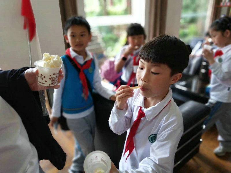 小朋友們先來到三樓多功能廳,在學(xué)校徐老師主持下拉開活動(dòng)的序幕。大家看了百強(qiáng)宣傳片,聽了關(guān)于企業(yè)發(fā)展概況、煉乳的起源和制造知識(shí)。小朋友們很認(rèn)真喲,做著筆記呢。當(dāng)技術(shù)員在現(xiàn)場(chǎng)用酒精做“新鮮奶及過期奶”檢驗(yàn)時(shí),同學(xué)們一個(gè)個(gè)躍躍欲試,爭著要看結(jié)果。